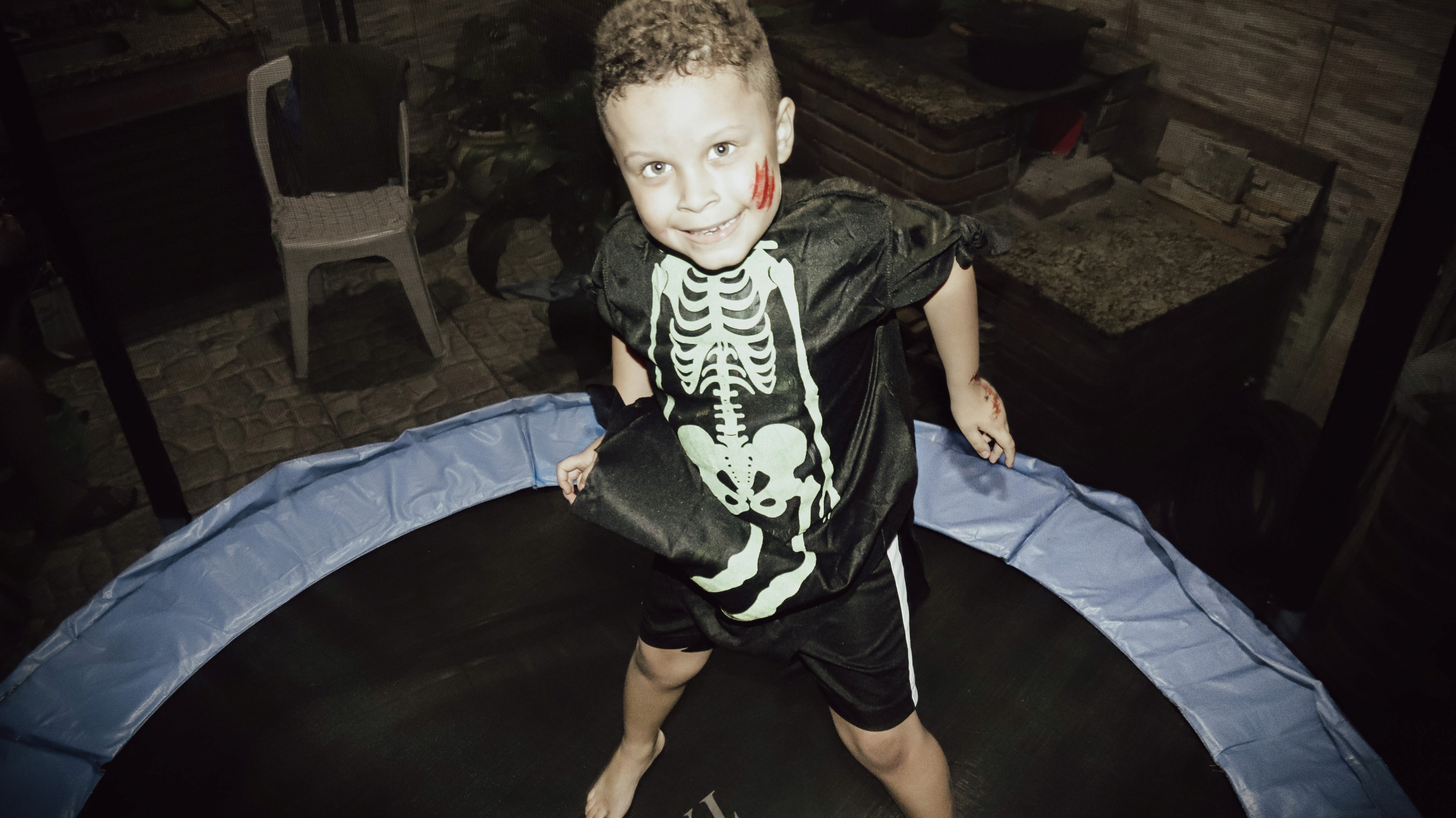 A fotografia de festas infantis com temas marcantes como o Halloween exige um olhar atento para a espontaneidade. Mais do que as fotos posadas, os registros capturam a euforia das crianças nas dinâmicas e a alegria do Miguel ao soprar as velas em um bolo que era uma verdadeira obra de arte "aterrorizante".